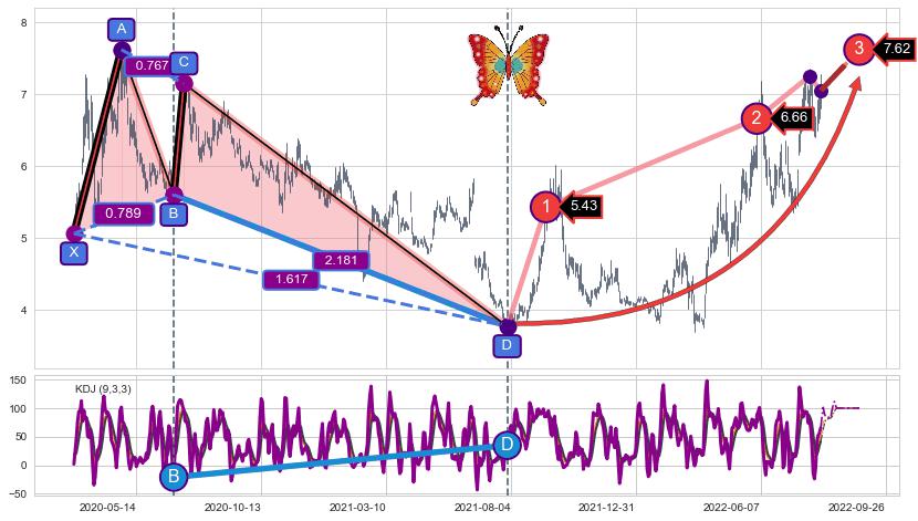 ➣ 已完成【蝴蝶】形态起点X: 2020-02-28, 终点D: 2021-07-30, 共348交易日