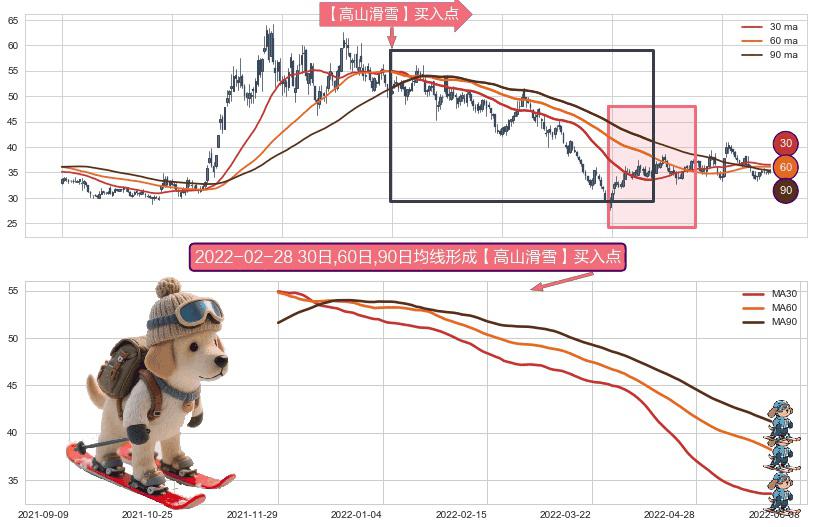 ⚀ 2021-11-29日-2022-05-27日显现 30日-60日-90日均线 【高山滑雪】买入点 看多信号,后市看涨,买入