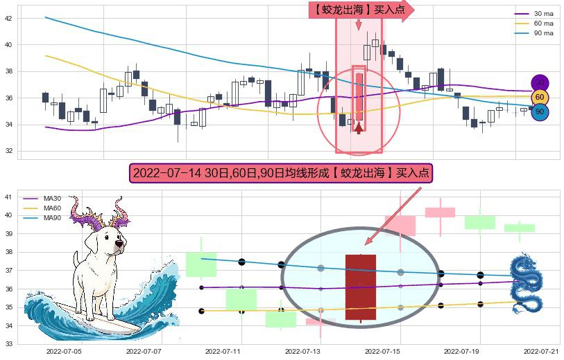 ⚀ 2022-07-14日显现 30日-60日-90日均线 【蛟龙出海】买入点 看多信号,后市看涨,买入