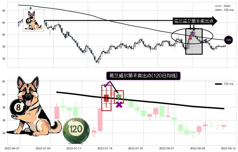 ⚀ 2022-07-19-日显现 葛兰威尔均线 120日均线 第⑧卖出点 下降趋势的中继信号,后市看跌,卖出信号