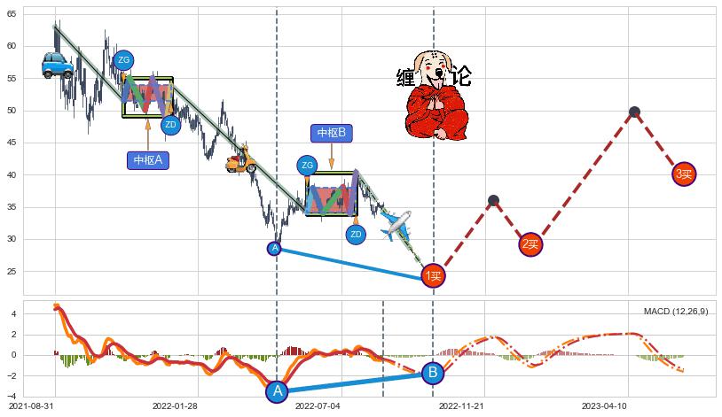 ➣ D点拟合预测价格49.75,距离最后交易收盘价格35.08相差 +41.81%