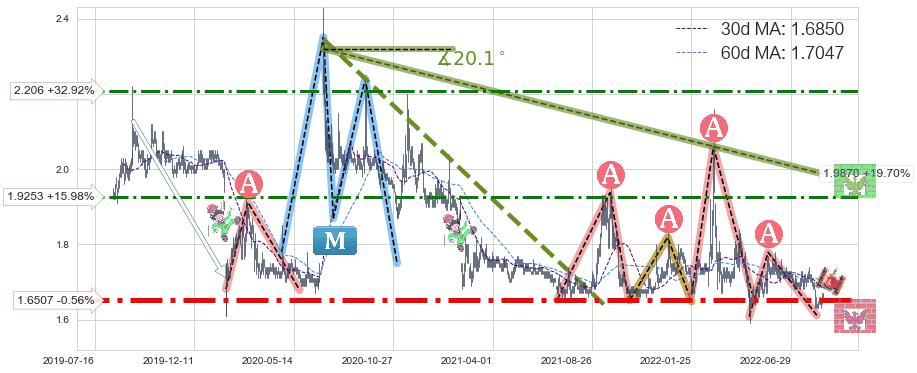 ♘ 阻力价格位1.9253,可信任强度56.78%,距离最后交易2022-08-12形成的收盘价格1.6600相差 +15.98%