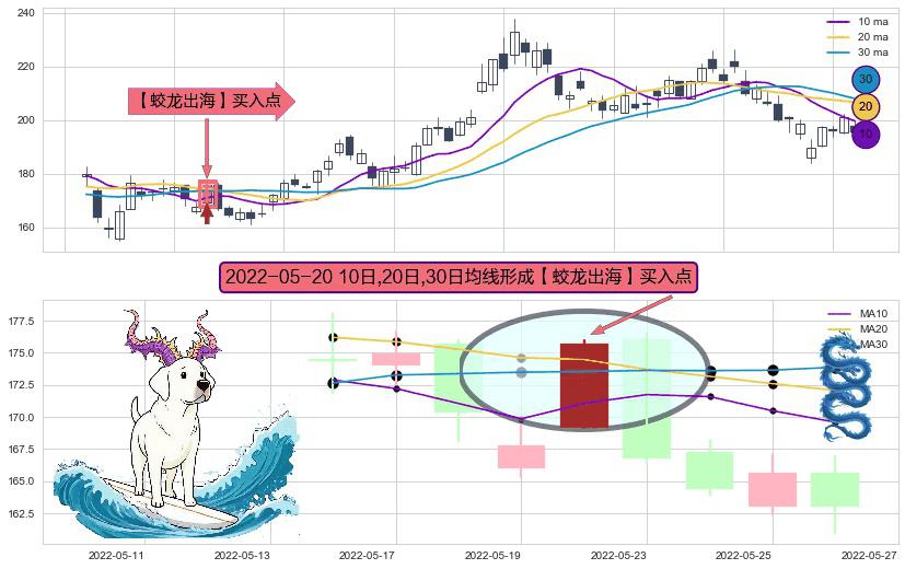 ⚀ 2022-05-20日显现 10日-20日-30日均线 【蛟龙出海】买入点 看多信号,后市看涨,买入