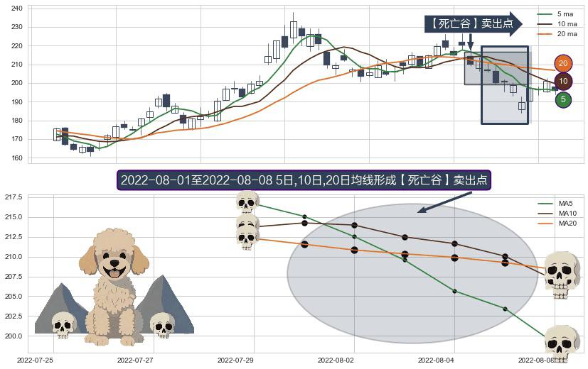 ⚀ 2022-08-02-日至2022-08-08-日显现 5日-10日-20日均线 【死亡谷】卖出点 看空信号,后市看跌,卖出