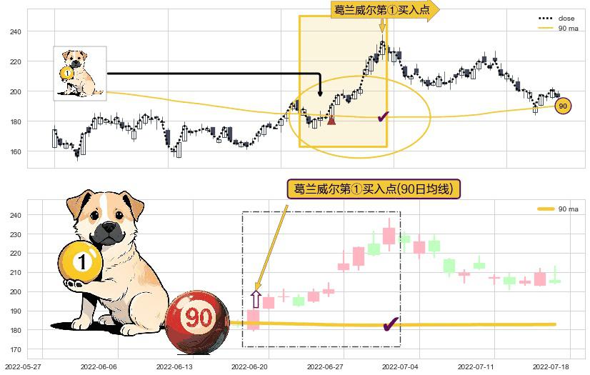 ⚀ 2022-06-17-日显现 葛兰威尔均线 90日均线 第买①入点 走势反转见底信号,后市看涨,买进信号