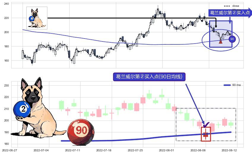 ⚀ 2022-08-08-日显现 葛兰威尔均线 90日均线 第②买入点 上升趋势的中继信号,后市看涨,买进信号
