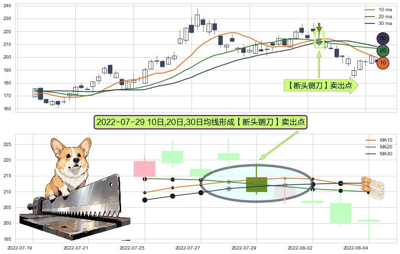 ⚀ 2022-07-29日显现 10日-20日-30日均线 【断头铡刀】卖出点 看空信号,后市看跌,卖出