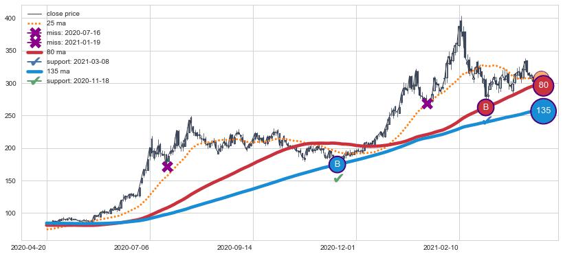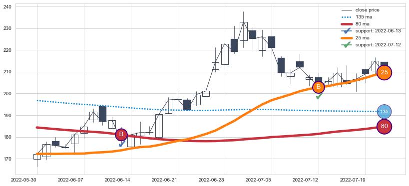 ⚄ 价格在均线获取支撑后再次向上反弹了【极短】距离, 第②买入点 支撑效果【等待验证】