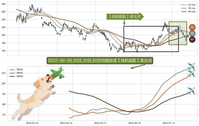 ⚀ 2022-04-12日-2022-07-25日显现 20日-30日-60日均线 【战机起航】卖出点 看空信号,后市看跌,卖出