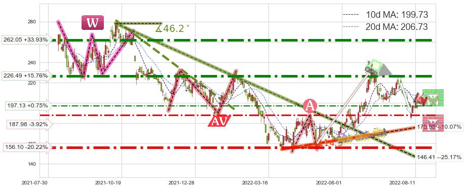 ♘ 阻力价格位197.13,可信任强度48.06%,距离最后交易2022-08-12形成的收盘价格195.66相差 +0.75%