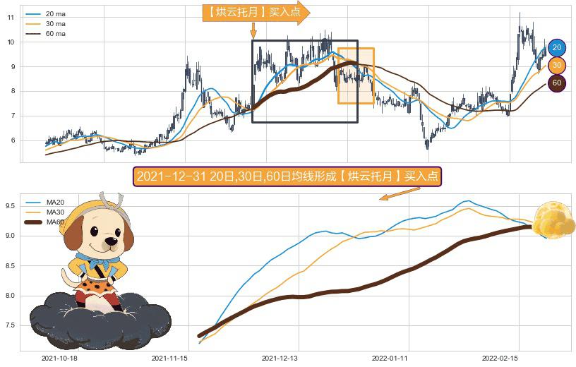 形态多维评估: ⚀ 2021-11-17日-2022-02-22日显现 20日-30日-60日均线 【烘云托月】买入点 看多信号,后市看涨,买入