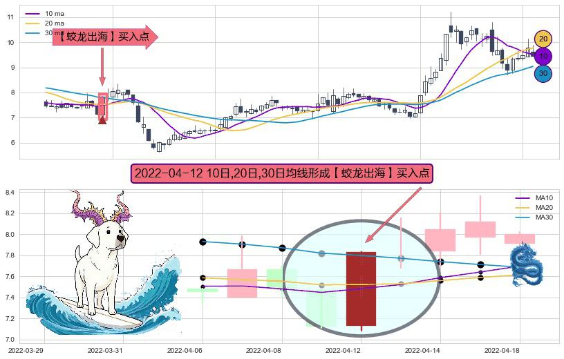 形态多维评估: ⚀ 2022-04-12日显现 10日-20日-30日均线 【蛟龙出海】买入点 看多信号,后市看涨,买入