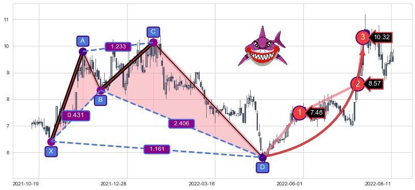 ➣ 已达成看涨【鲨鱼】形态全部的预期目标