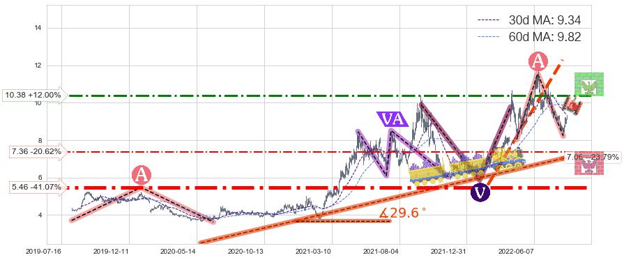 ♘ 支撑价格位7.36,可信任强度41.92%,距离最后交易2022-08-12形成的收盘价格9.27相差 -20.62%