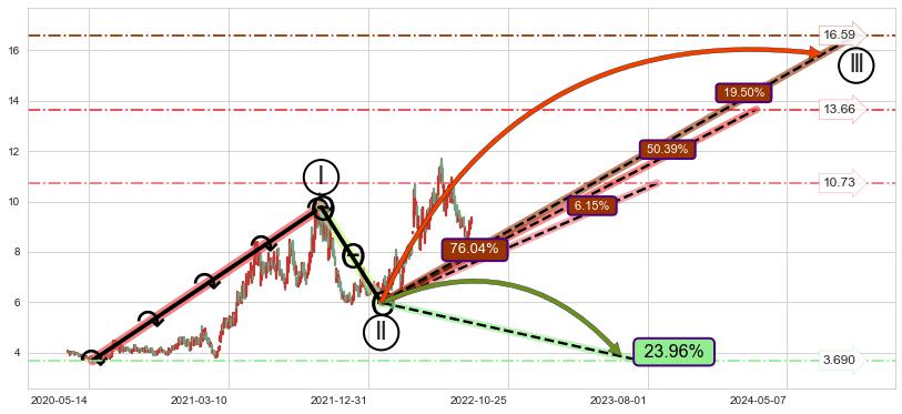 ➣ 循环浪继续向上【平均值】位置(2024-03-06, 13.66),匹配聚类样本比例66.27%, 可能性概率50.39%