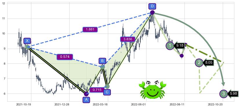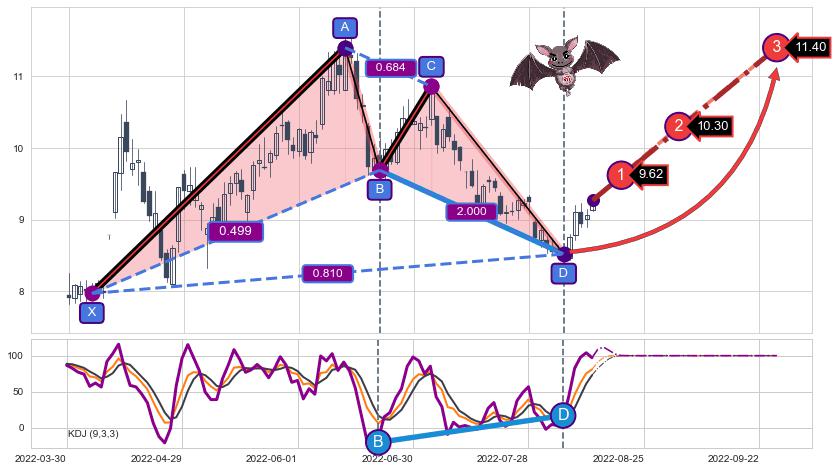 ➣ 已完成【蝙蝠】形态起点X: 2022-04-07, 终点D: 2022-08-05, 共83交易日