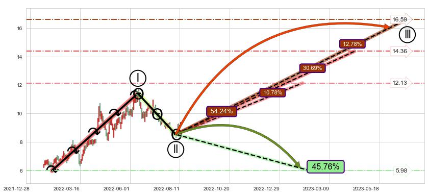 ➢ AI预测: 假定反转继续,第❸价格目标位置(2022-10-21, 5.98)