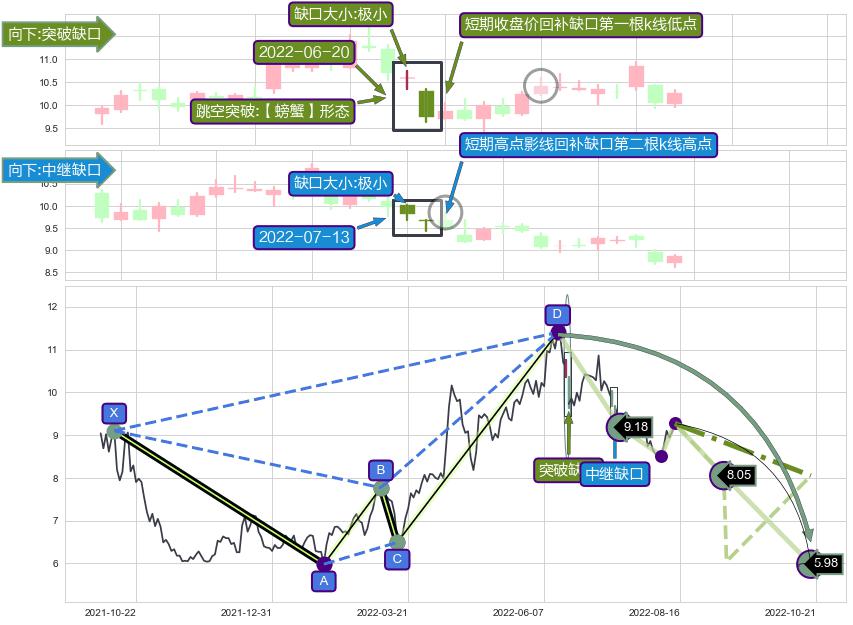 ➣ 已完成【螃蟹】形态起点X: 2021-10-12, 终点D: 2022-06-14, 共164交易日