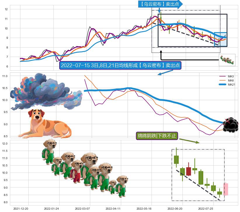 ➢ 高点影线(2022-07-14: 9.85 )→回踩→第二根k线高点(2022-07-13: 9.68 )