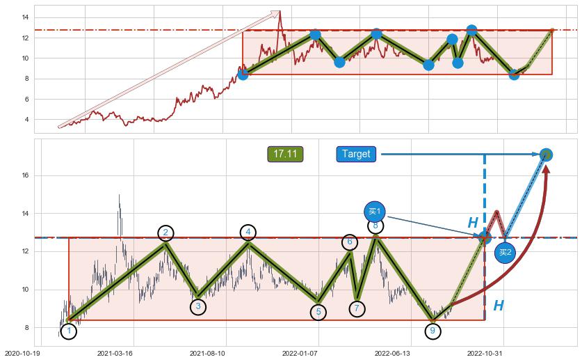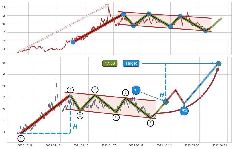 ➣ 最小中继整理涨幅→𝐇: 6.65 (𝐇旗杆的长度:旗杆起点→顶点)