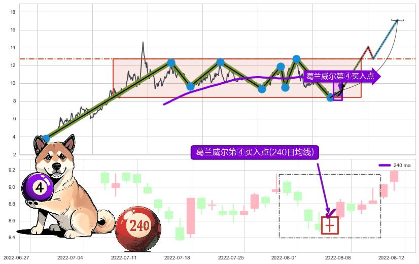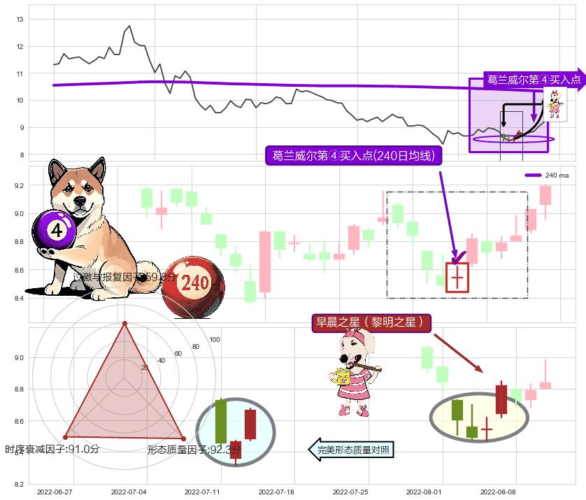 ➢ 收盘价(2022-08-11: 9.03 )→再次回踩→第一根k线低点(2022-08-01: 8.78 )