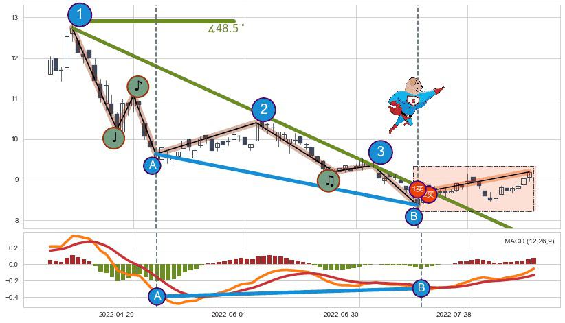 ➣ 2022-04-14-2022-08-11下跌趋势存在反转上涨[机会],其原下跌趋势的阻力位(7.59)已被突破[强支撑信号],原下跌趋势角度: 48.5˚