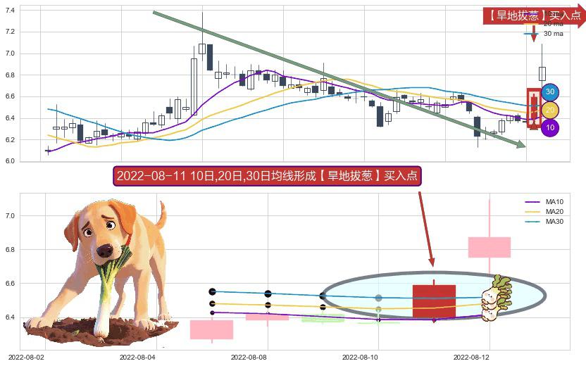⚀ 2022-08-11日显现 10日-20日-30日均线 【旱地拔葱】买入点 看多信号,后市看涨,买入