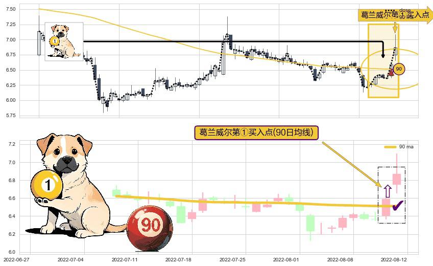 ⚀ 2022-08-11-日显现 葛兰威尔均线 90日均线 第买①入点 走势反转见底信号,后市看涨,买进信号
