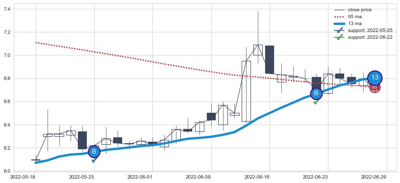 ⚃ 在突破点附近ma走势明显平稳迹象,稍后的走势中ma上翘迹象也出现,信号【可信度中等偏上】