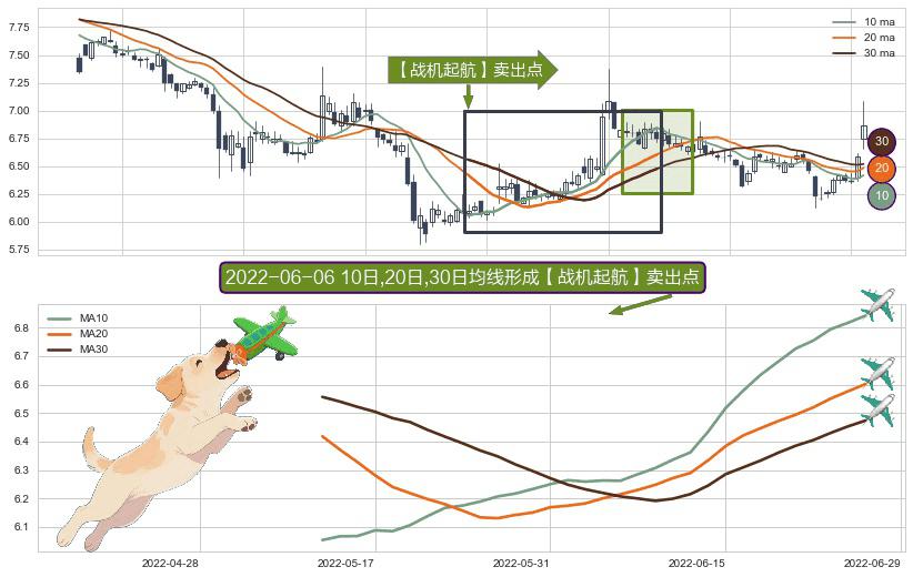 ⚀ 2022-05-12日-2022-06-27日显现 10日-20日-30日均线 【战机起航】卖出点 看空信号,后市看跌,卖出