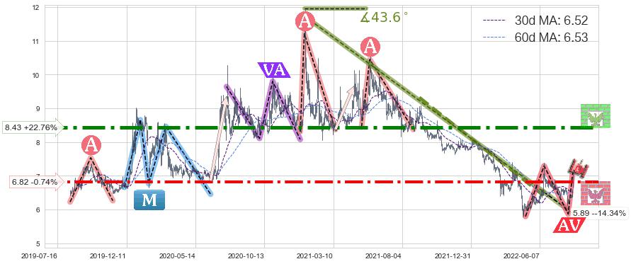 ➣ 【仅预测突破】最后价格:6.87与预测突破价格:7.14→【空间中等】后续最小【反转】第一目标价格→(2022-10-20: 8.39 )