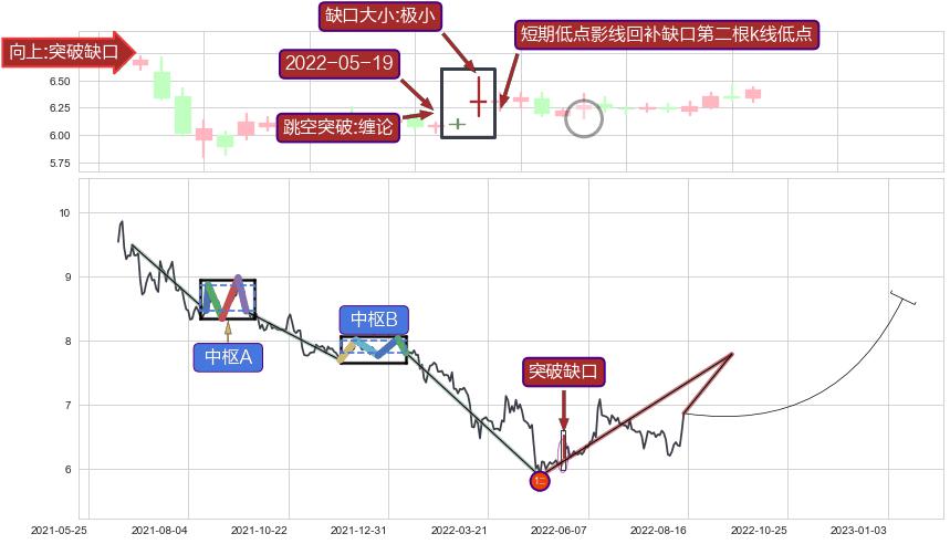 ➢ 低点影线(2022-05-26: 6.15 )→回踩→第二根k线低点(2022-05-19: 6.17 )