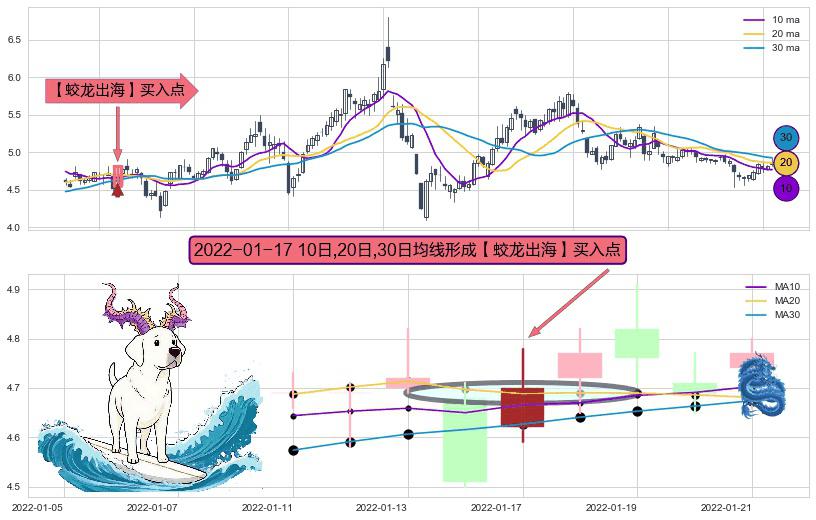 形态多维评估: ⚀ 2022-01-17日显现 10日-20日-30日均线 【蛟龙出海】买入点 看多信号,后市看涨,买入