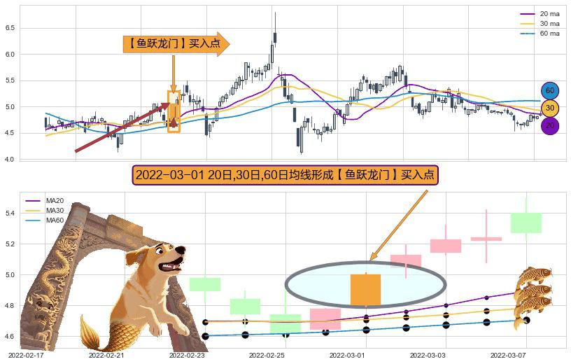 形态多维评估: ⚀ 2022-03-01日显现 20日-30日-60日均线 【鱼跃龙门】买入点 看多信号,后市看涨,买入