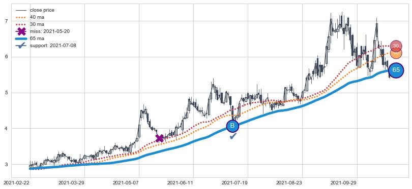 上涨趋势2021-02-22-2021-10-27,均线65确认关键支撑1处