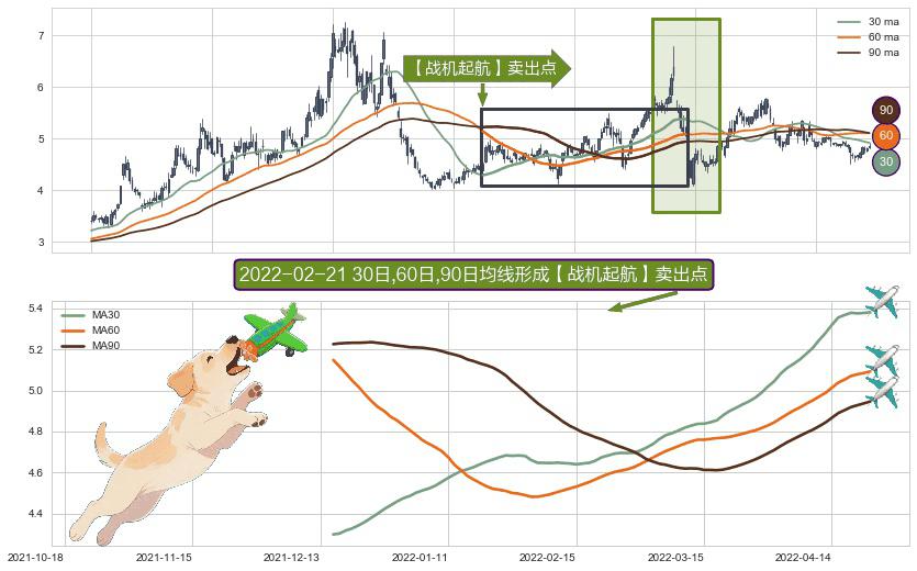 形态多维评估: ⚀ 2021-12-15日-2022-04-22日显现 30日-60日-90日均线 【战机起航】卖出点 看空信号,后市看跌,卖出