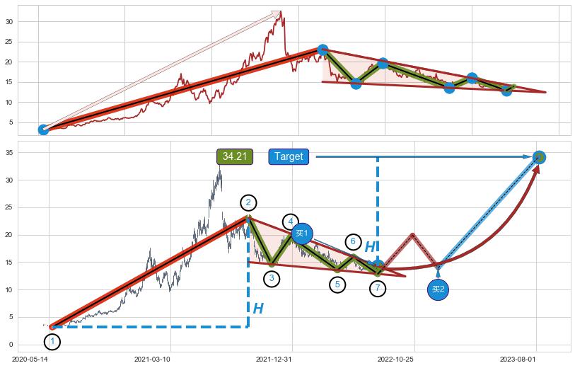 ➣ 【仅预测突破】最后价格:13.77与预测突破价格:14.26→【空间临近】后续最小【整理】第一目标价格→(2023-08-07: 34.21 )