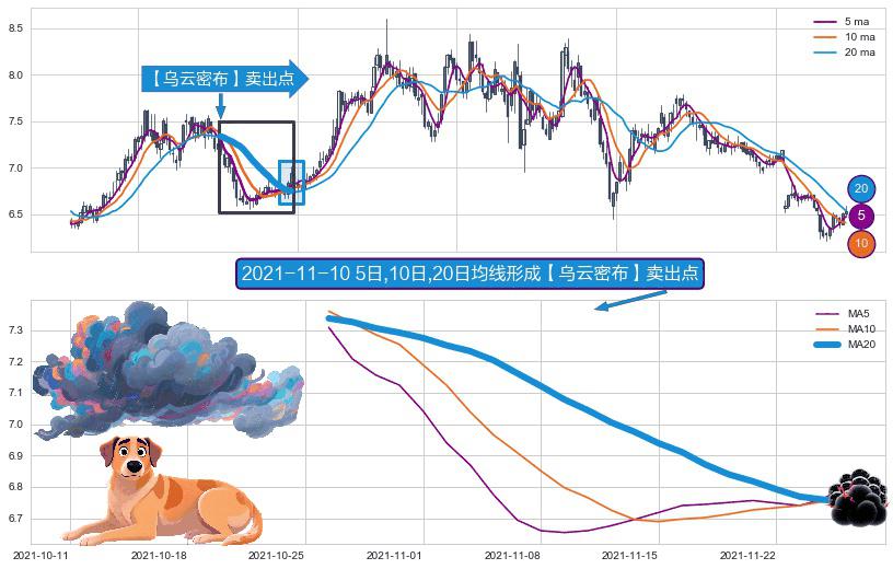 ⚀ 2021-10-26日-2021-11-25日显现 5日-10日-20日均线 【乌云密布】卖出点 看空信号,后市看跌,卖出