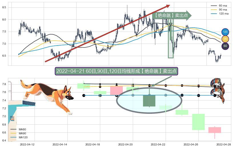⚀ 2022-04-21日显现 60日-90日-120日均线 【绝命跳】卖出点 看空信号,后市看跌,卖出