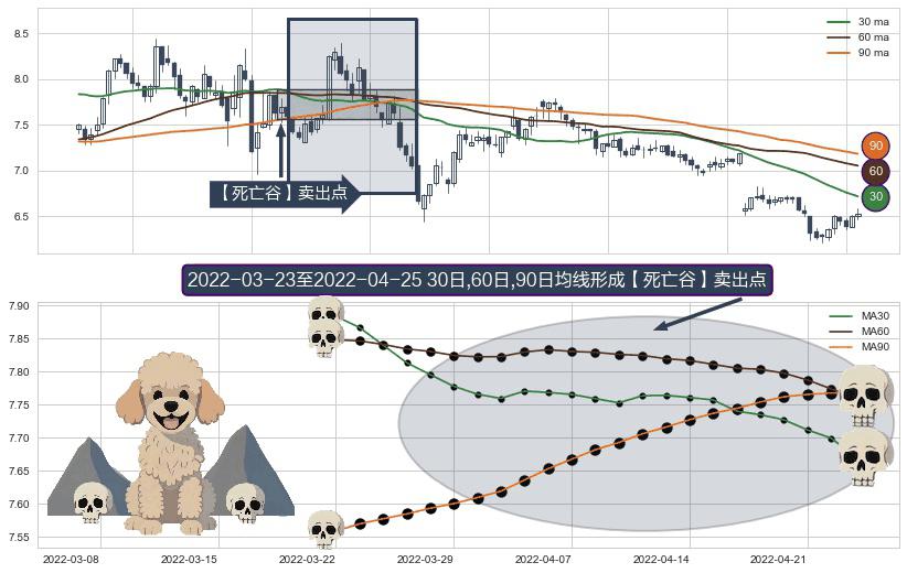 ⚀ 2022-03-24-日至2022-04-25-日显现 30日-60日-90日均线 【死亡谷】卖出点 看空信号,后市看跌,卖出