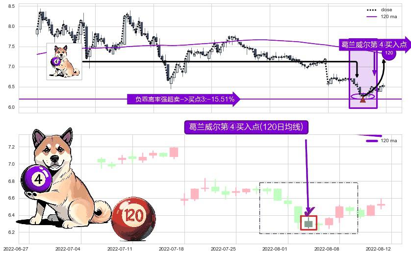 ⚀ 2022-08-03-日显现 葛兰威尔均线 120日均线 第④买入点 下降趋势均值回复的短线反弹信号,后市看涨,买进信号