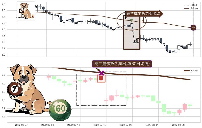 ⚀ 2022-07-15-日显现 葛兰威尔均线 60日均线 第⑦卖出点 下降趋势的中继信号,后市看跌,卖出信号