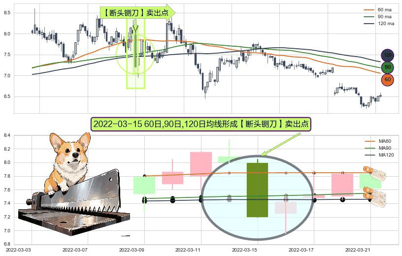 ⚀ 2022-03-15日显现 60日-90日-120日均线 【断头铡刀】卖出点 看空信号,后市看跌,卖出