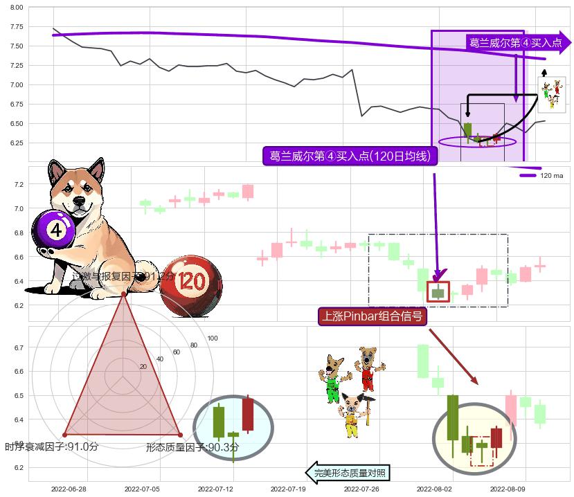 | 4 🅚:塔形底 | 圆底 ➕ 🎢:葛兰威尔第④买入点买入点信号形成后,猜想后续走势持续反弹上升(均值回复) ☞ 看多信号 ⇥ 【均线】交织【🅚线】⇥ 综合量化分数: 54 | > |