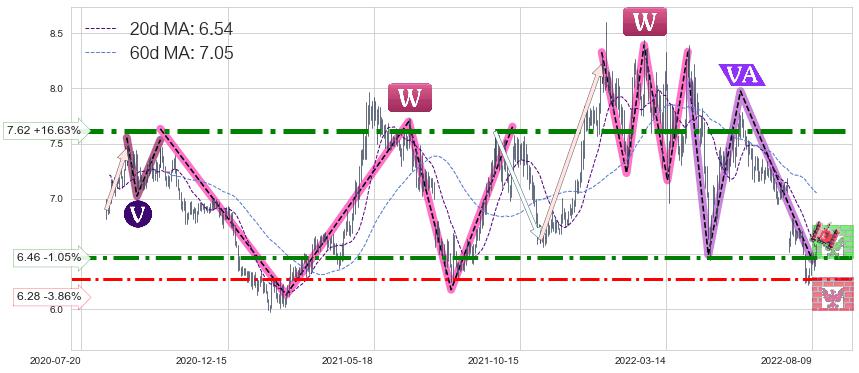 ♘ 阻力价格位7.62,可信任强度95.37%,距离最后交易2022-08-12形成的收盘价格6.53相差 +16.63%