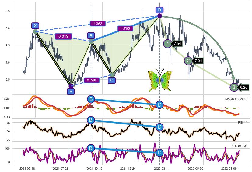 ➣ 已完成【蝴蝶】形态起点X: 2021-05-18, 终点D: 2022-02-21, 共186交易日
