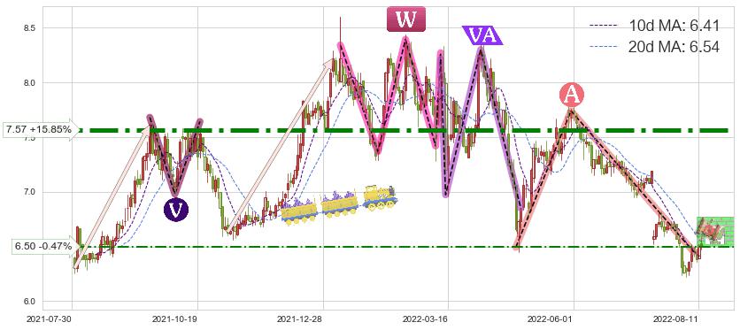 ♘ 阻力价格位7.57,可信任强度89.89%,距离最后交易2022-08-12形成的收盘价格6.53相差 +15.85%