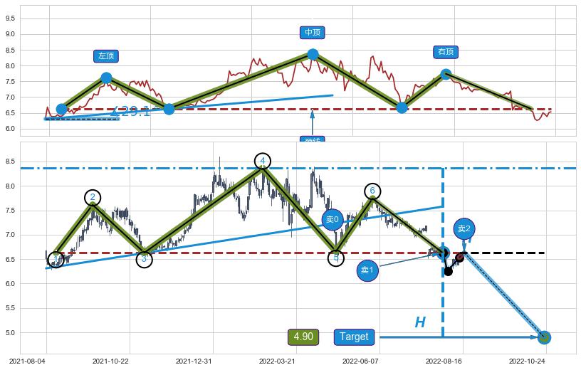 ➢ 【卖1】: 激进型 卖点→(2022-07-29: 6.63 )形成突破三重顶【反转】形态