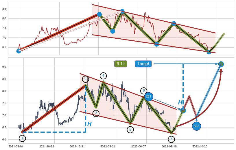 ➢ AI预测: 假定反转如期而至,第❶价格目标位置(2022-09-12, 7.06)