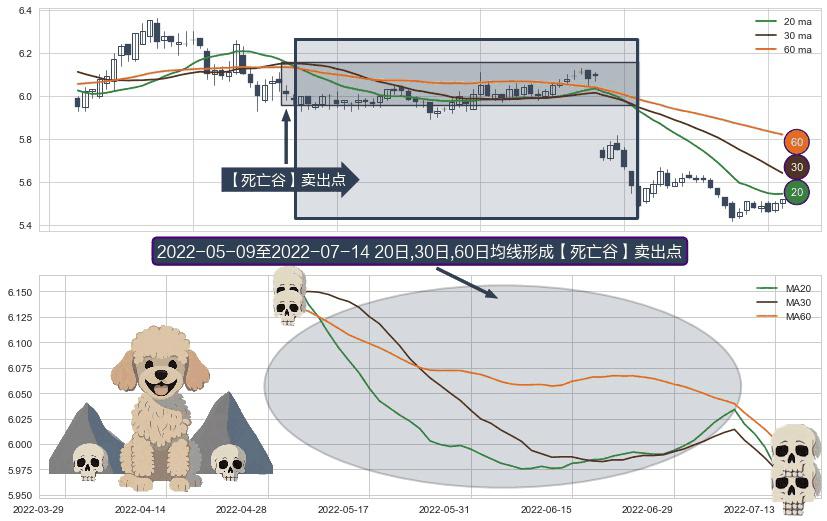 形态多维评估: ⚀ 2022-05-10-日至2022-07-14-日显现 20日-30日-60日均线 【死亡谷】卖出点 看空信号,后市看跌,卖出